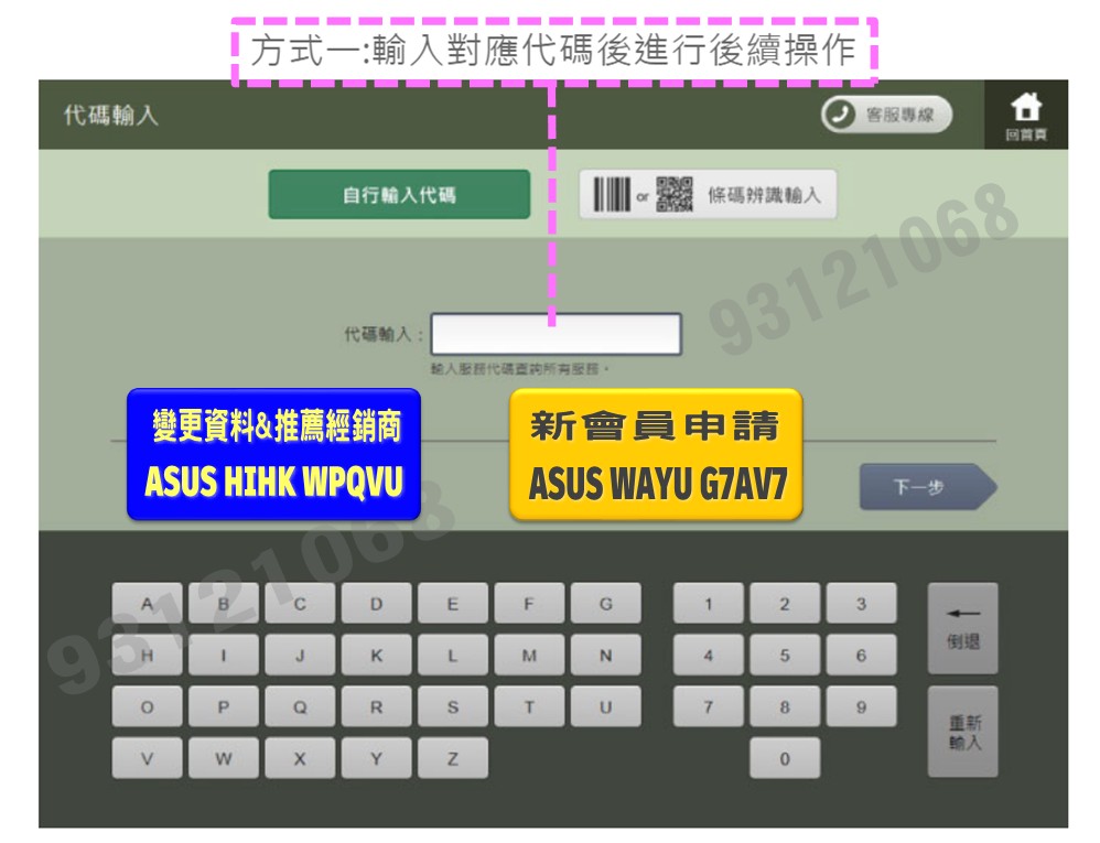 方式一選擇代碼: 輸入本店專屬列印代碼